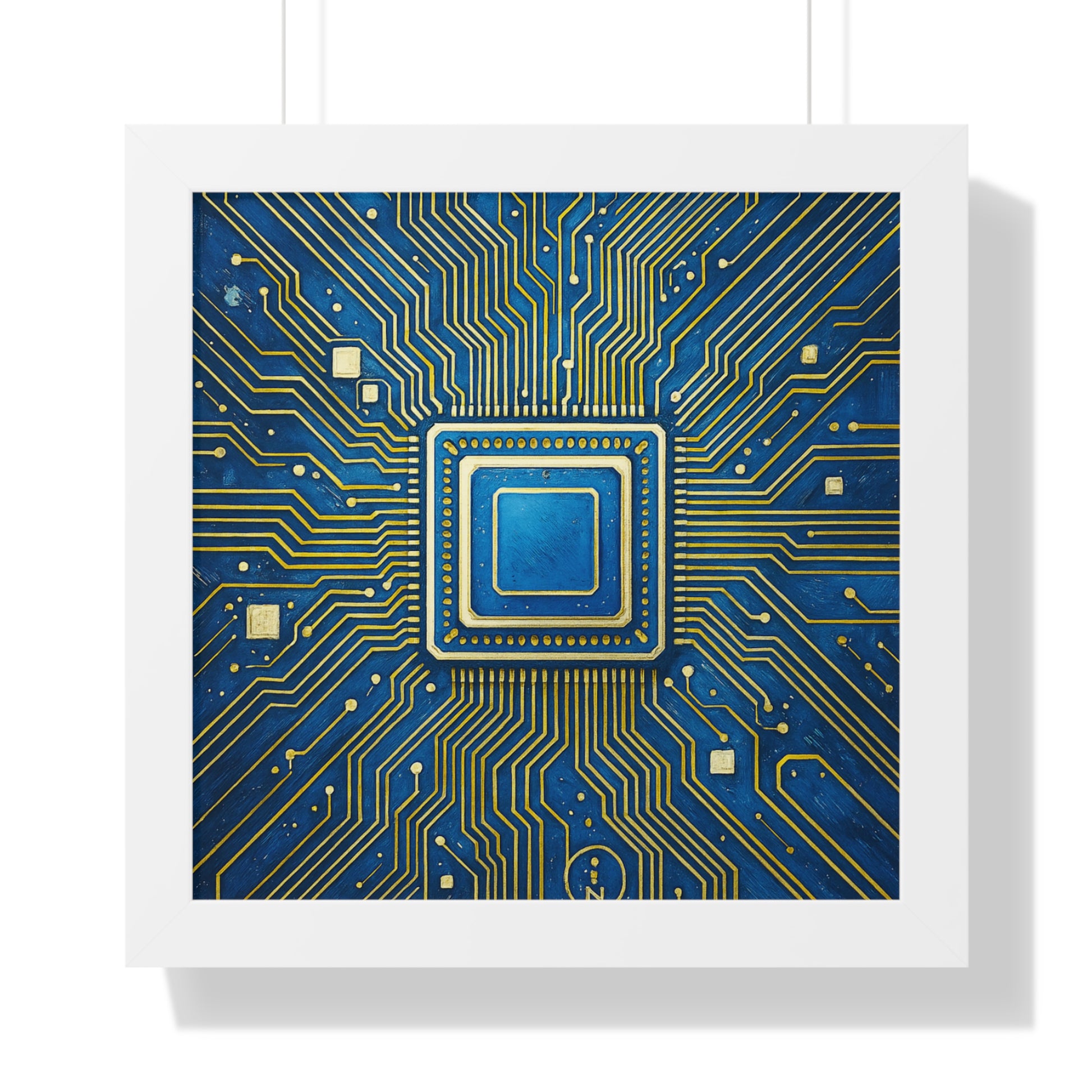 Tech-Inspired Framed Poster Art, Modern Wall Decor, Digital Circuit Artwork, Geek Gift, Tech Enthusiast Decoration, Unique Home Decor